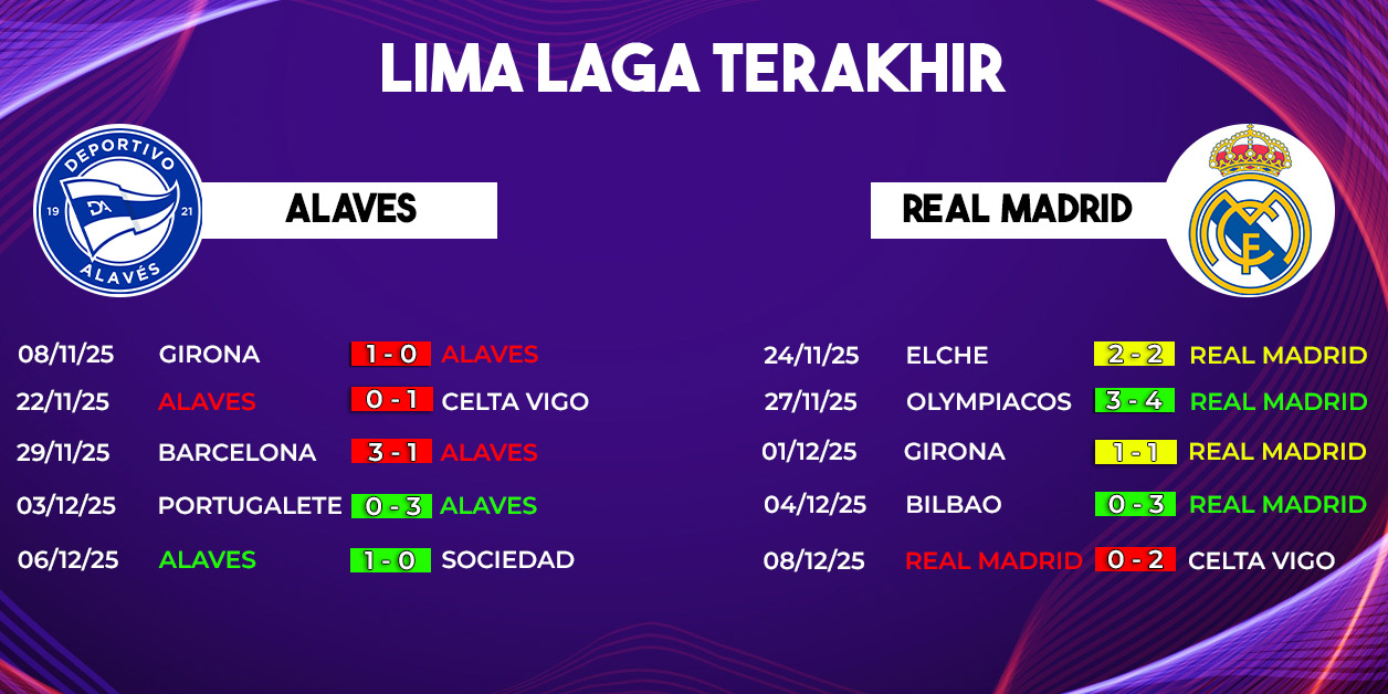 Apakah Real Madrid mampu bangkit dan menjaga asa juara, atau justru Alaves yang mencuri panggung? Jawabannya akan terungkap pada dini hari nanti dalam salah satu laga paling menarik pekan ini di La Liga Spanyol.