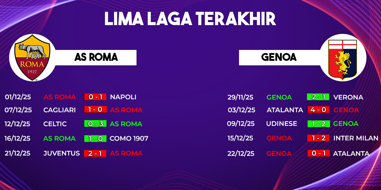 Sementara itu, Genoa datang dengan semangat perbaikan, namun tantangan berat menanti mereka di ibu kota. Dengan segala pertimbangan, kami menilai Roma memiliki peluang besar untuk mengamankan tiga poin dan menutup tahun dengan hasil positif di Serie A.
