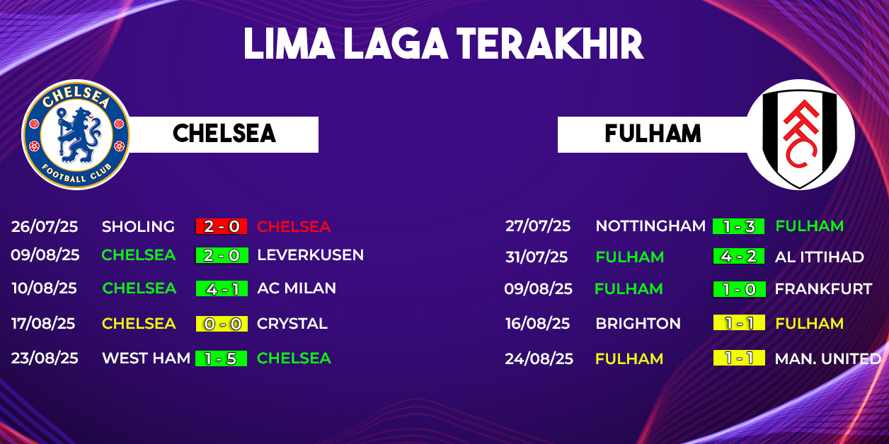 Dengan segala persiapan dan motivasi tinggi dari kedua tim, laga Chelsea vs Fulham 30 Agustus 2025 dipastikan menjadi tontonan menarik. Para pendukung tentu menantikan duel sengit yang bisa menentukan arah perjalanan kedua klub di musim baru Liga Inggris.