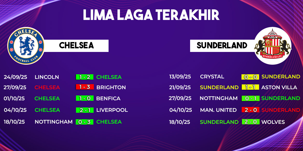 Dalam lima pertemuan terakhir, Chelsea mendominasi dengan empat kemenangan dan satu hasil imbang. Sunderland belum merasakan kemenangan atas Chelsea dalam beberapa tahun terakhir. Statistik ini memperlihatkan perbedaan kualitas tim, tetapi sepak bola selalu penuh kejutan.