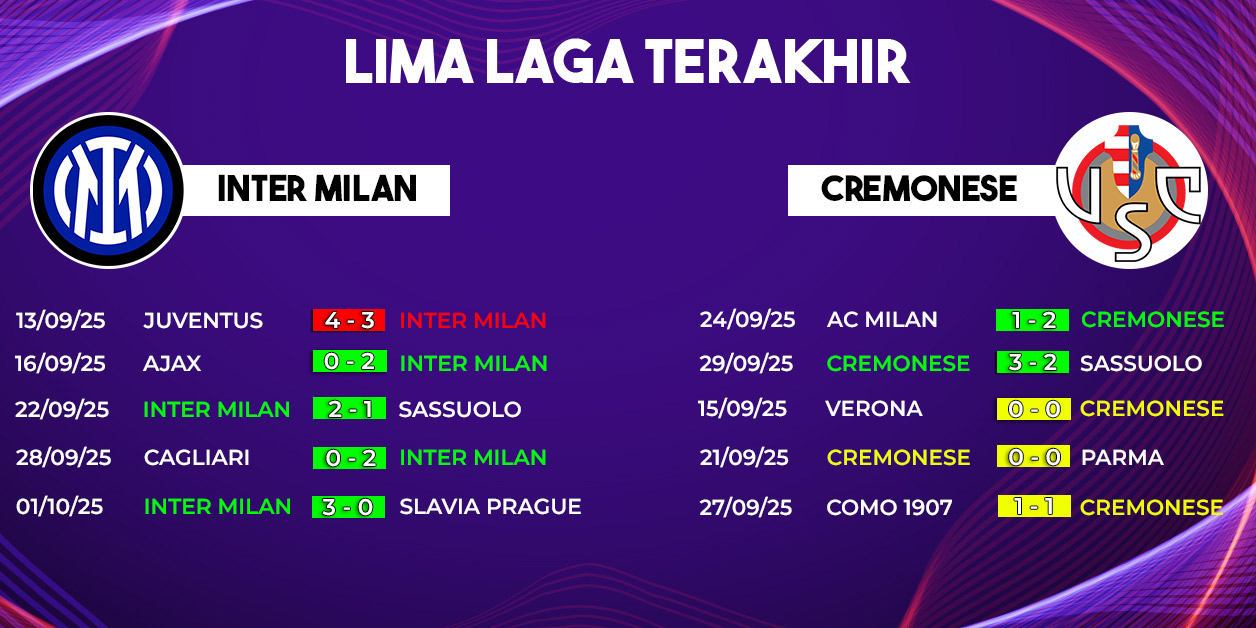 Meski secara tradisi berada di level berbeda, kedua tim saat ini sama-sama mengoleksi sembilan poin di klasemen sementara Serie A. Kondisi tersebut membuat duel ini menarik untuk ditunggu, sebab Inter sebagai raksasa Italia akan menghadapi Cremonese yang sedang naik daun dengan penuh percaya diri.