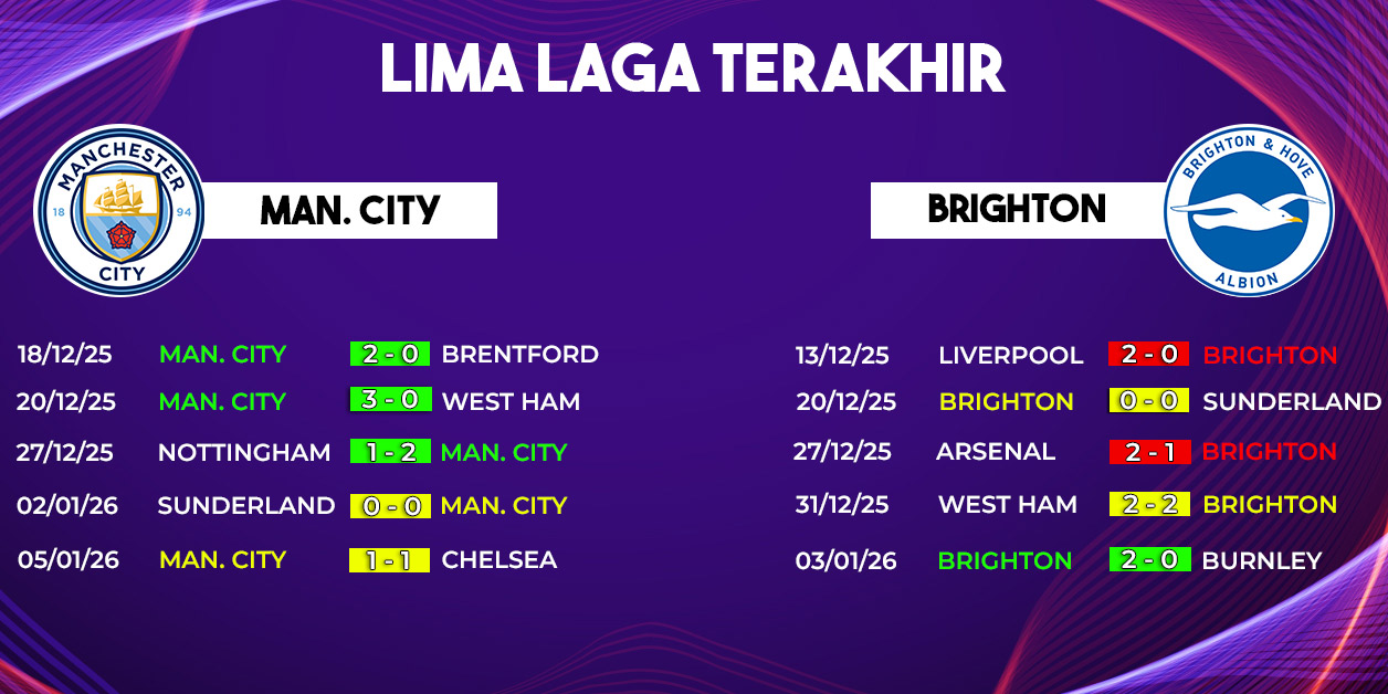 Namun, City tetap harus waspada terhadap serangan balik cepat Brighton yang bisa memanfaatkan celah di lini belakang. Disiplin posisi dan transisi bertahan akan menjadi kunci bagi tuan rumah untuk mengamankan tiga poin tanpa drama.
