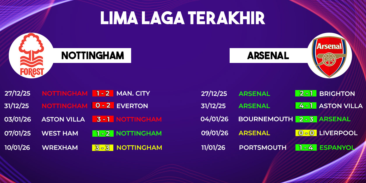 Pertandingan Nottingham Forest vs Arsenal di pekan ke-22 Premier League 2025/2026 menjadi laga krusial bagi kedua tim dengan tujuan yang berbeda. Arsenal ingin menjaga posisi puncak klasemen dan melanjutkan tren positif, sementara Nottingham Forest berusaha menjauh dari ancaman degradasi.
